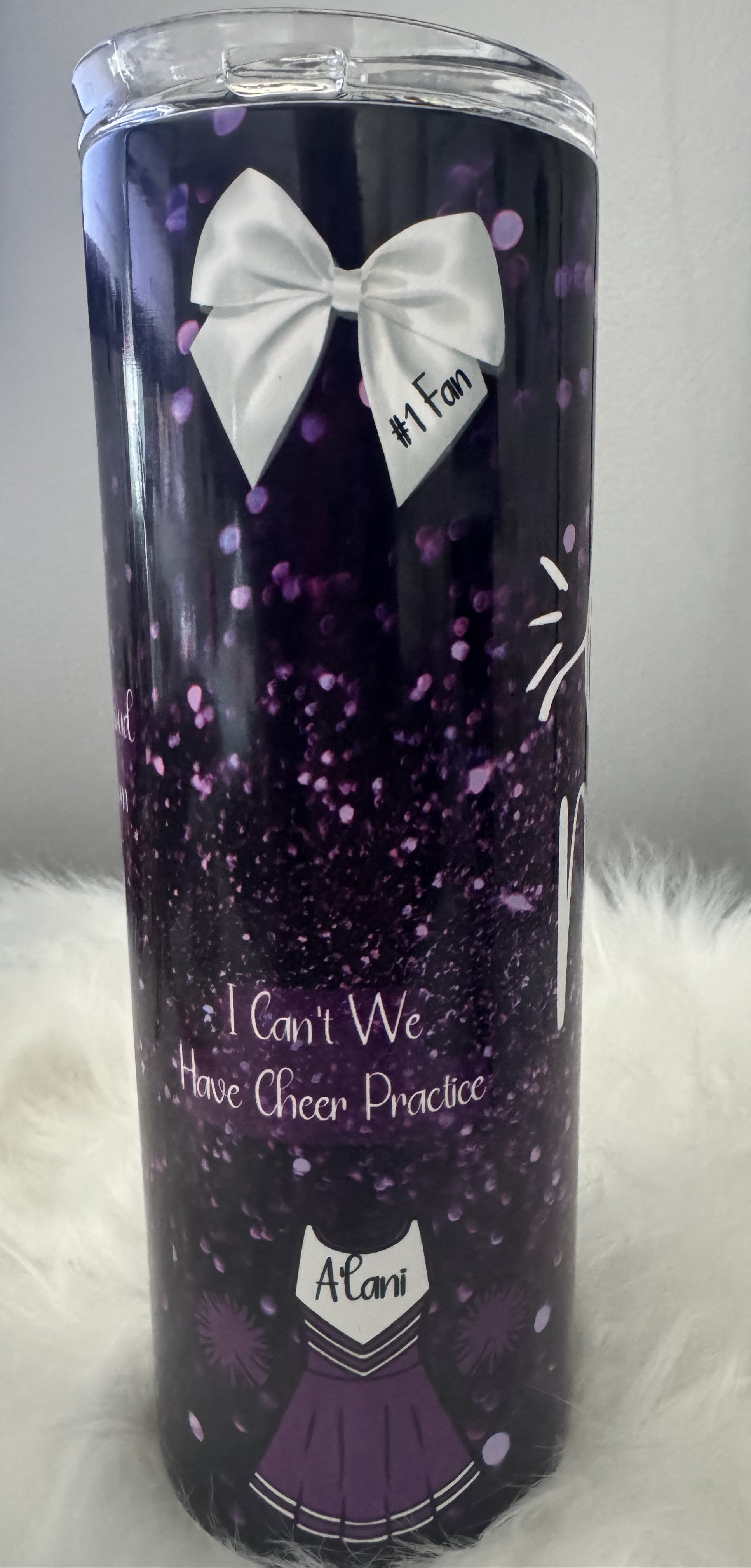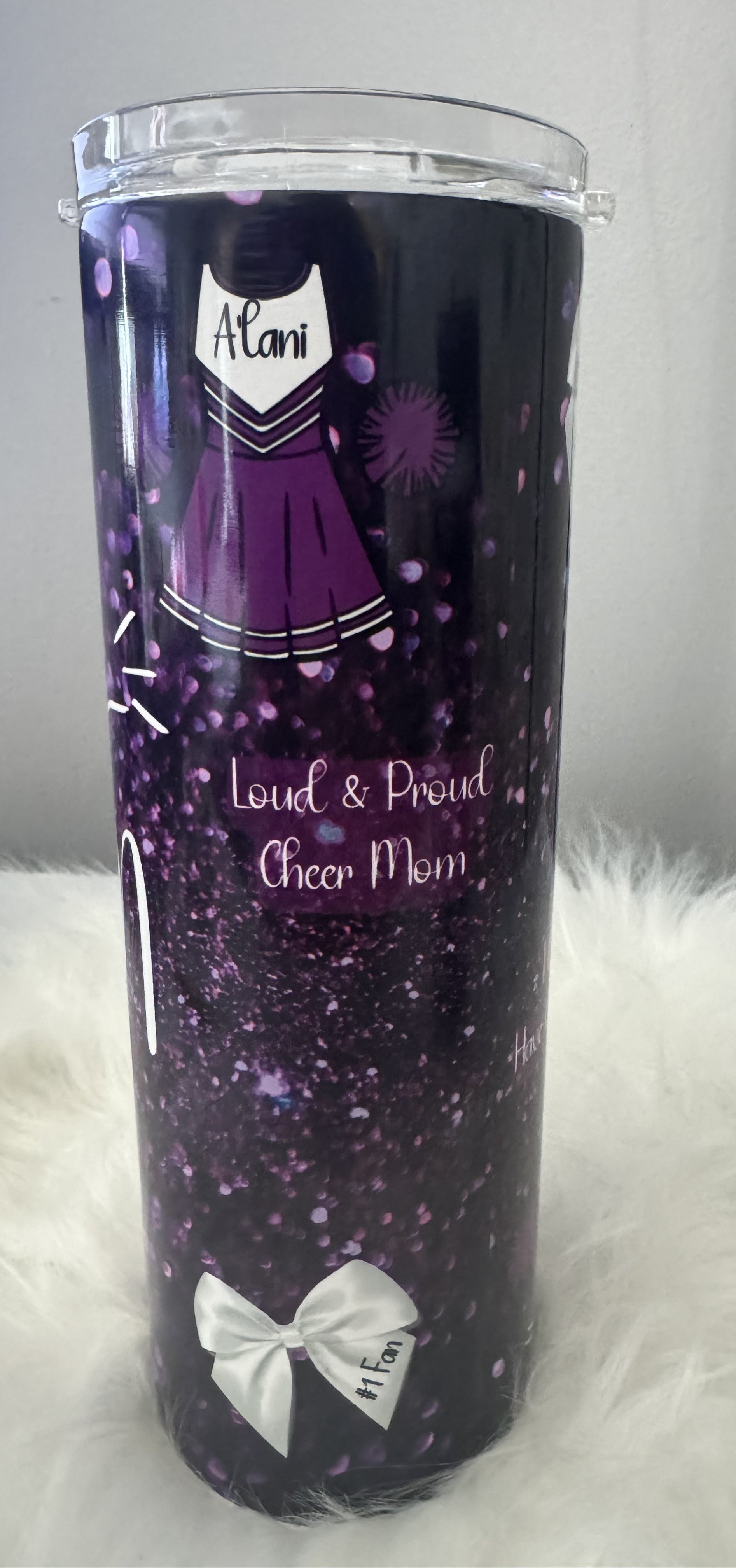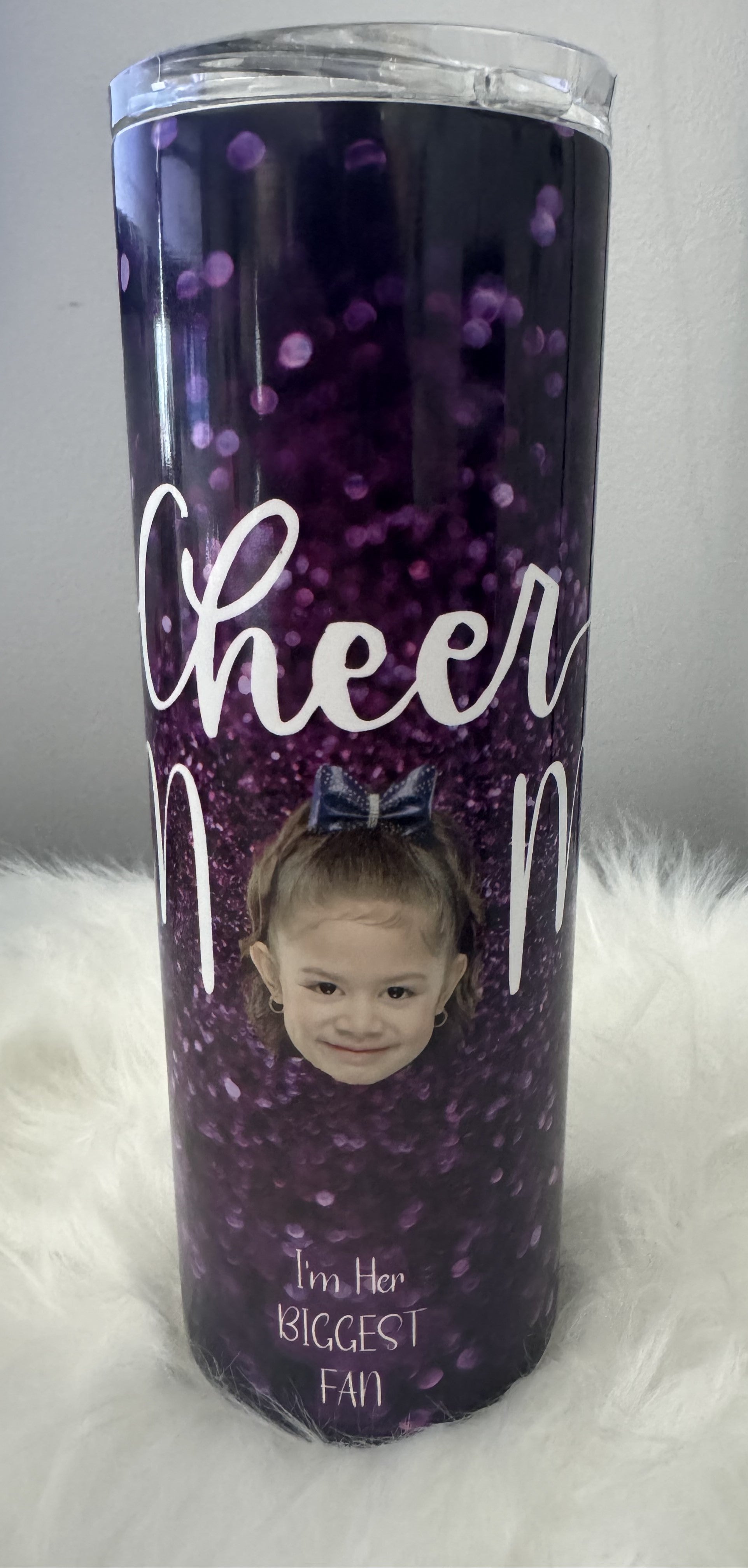 Stay hydrated or cozy up with our versatile 20oz Cheer Mom Tumbler, designed to keep your beverages hot or cold as you cheer on! Personalized inspiring quotes and your cheerleader's photo for a heartfelt touch that celebrates your pride and support. Whether you're at practices, competitions, or simply on the go, this tumbler is your perfect companion. Embrace every cheer-filled moment with style and functionality!