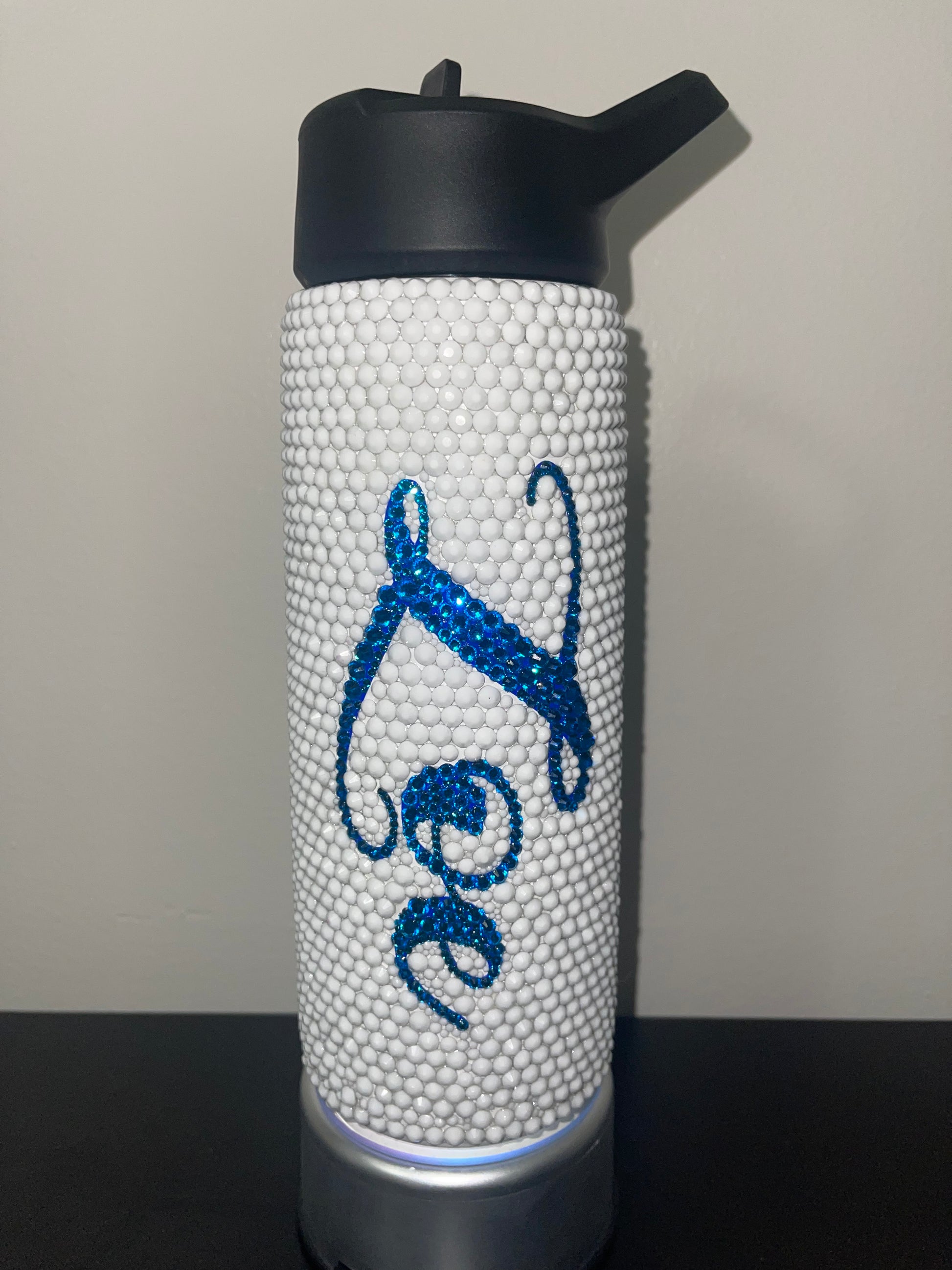 24 oz Tumbler with over 1,000 hand glued glass rhinestones.
