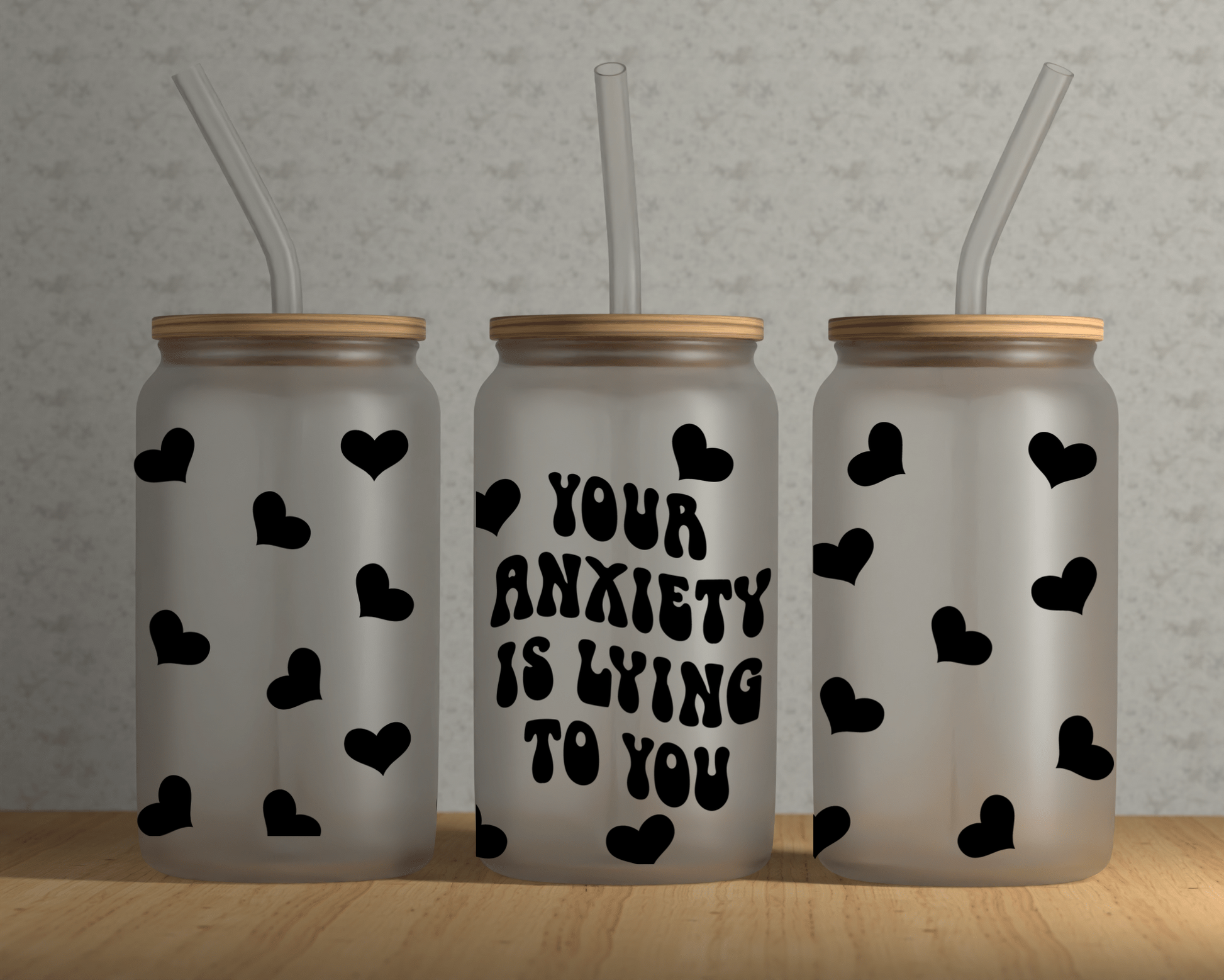 Your Anxiety Is Lying to You glass Can / 16oz Frosted Glass Can.
